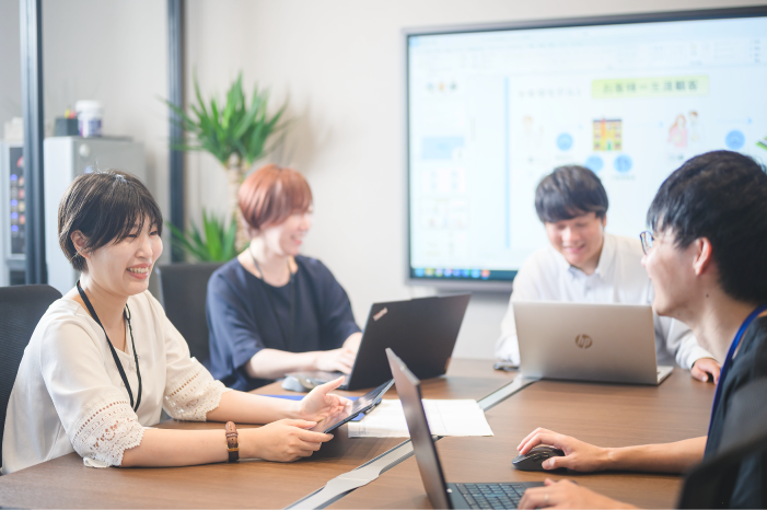 経理、人事、総務、Web戦略など会社の根幹に関わる業務を行っております。